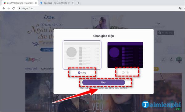 Bước 2: Chọn giao diện Sáng hoặc Tối tùy theo sở thích của bạn, sau đó nhấn 'Chọn'.