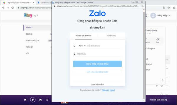 Bước 5: Nếu bạn chưa đăng nhập Zalo trên máy tính, khi nhấn 'Tải xuống' giao diện Zing MP3 sẽ hiển thị như sau: